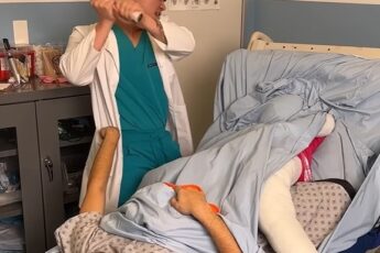 It’s not every day that you see a patient hanging halfway off a hospital bed and still finding time to