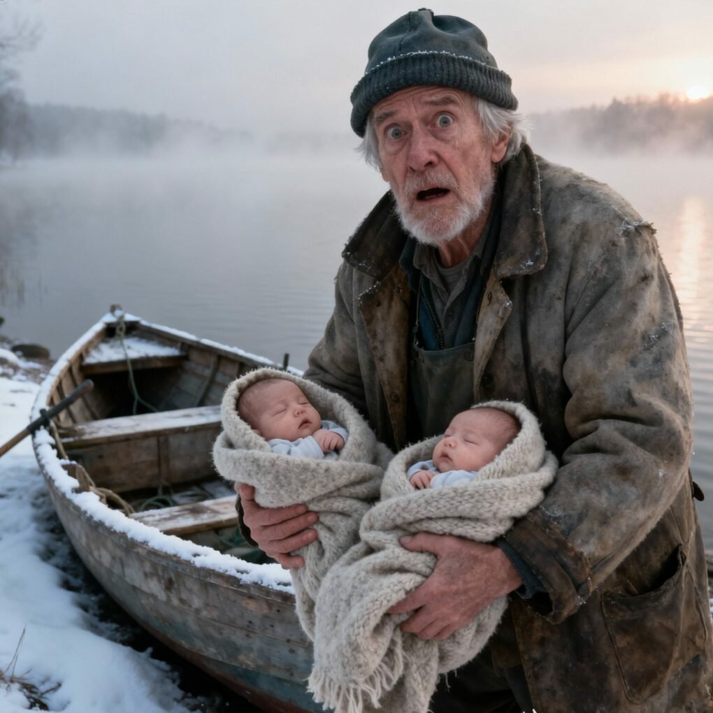 One January morning, as dawn broke over the frozen lake, James walked to his old wooden boat that he used as a storage shed. When he opened the door, he froze. Inside, between ropes and buckets, were two small bundles wrapped in wool blankets. At first, he thought someone had left supplies there—but then one of the bundles moved. A soft whimper cut through the silence. Inside was a baby girl, her cheeks red from the cold. Beside her lay a baby boy, eyes wide open, breathing weakly. There was no note, no footprints in the snow, no sign of who had left them.