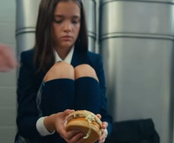 “Thank you, Stacy…” Mia said softly. She slowly picked up the burger. She was extremely hungry because Stacy had taken her lunch money earlier.