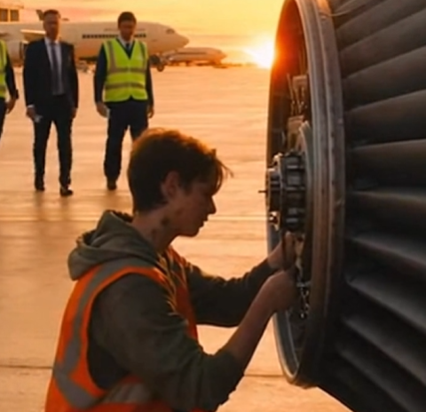 Sure enough, there was a small boy sitting among millions of dollars worth of aircraft components, calmly working on one of the damaged turbines.