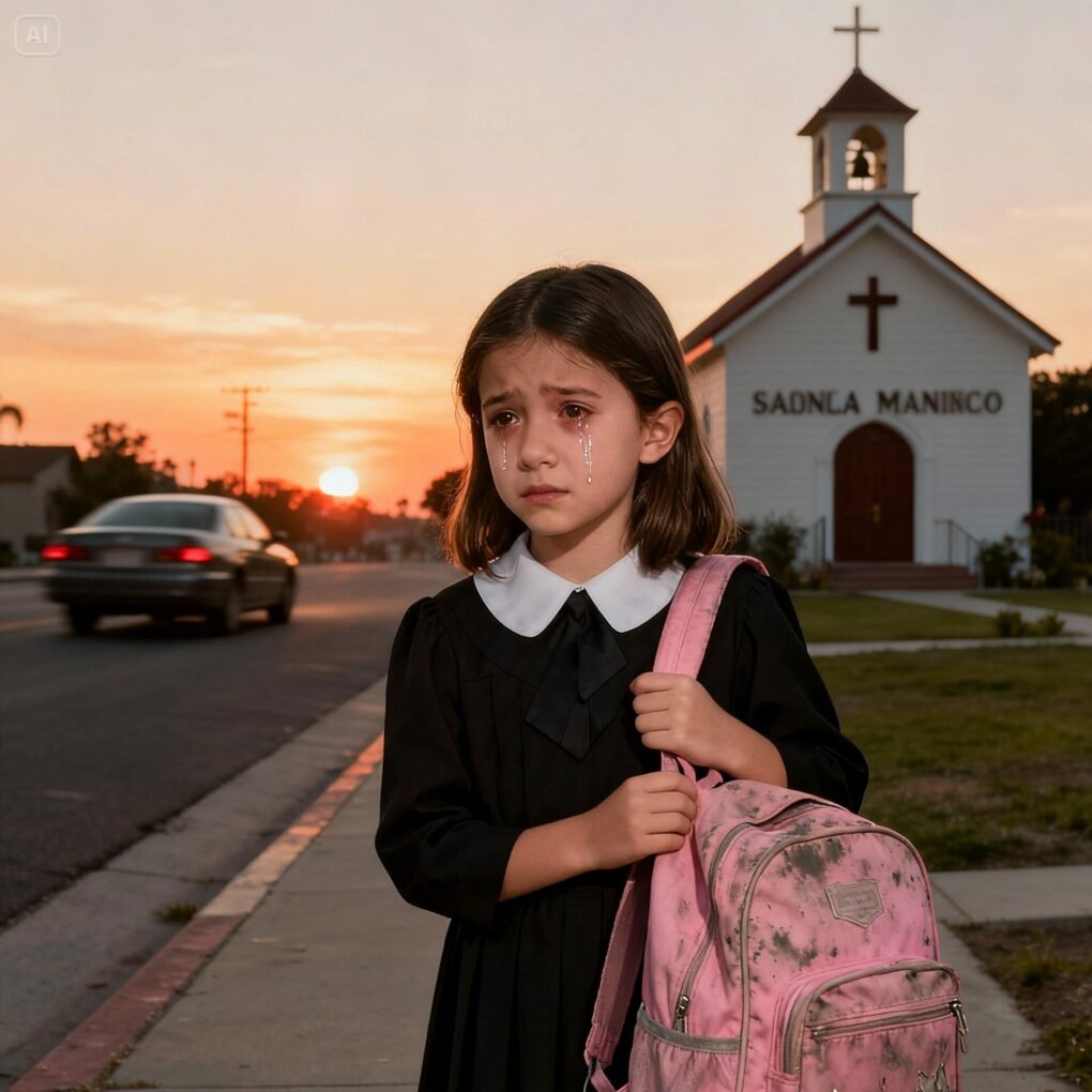 The late afternoon sun cast long shadows across the small chapel in Santa Monica. The mourners drifted away one by one, their footsteps fading into the sound of ocean waves nearby. Nine-year-old Emily Carter stood alone near the front steps, clutching the sleeve of her black dress. She had cried until her eyes burned. Her father, Daniel Carter, the anchor of her world, had been lowered into the ground only an hour earlier. Everything felt too quiet now.