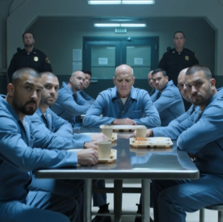That afternoon was no different. He sat with his tray—some overcooked meat, mashed potatoes, and a slice of bread—and took measured bites. Around him, tension moved like an invisible current. A new inmate had arrived the previous day, and word had already spread.