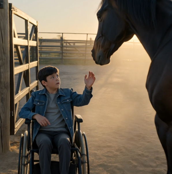 A massive stallion, his blue-black coat shimmering under the light. His presence commanded respect… but that day, it wasn’t respect he radiated.