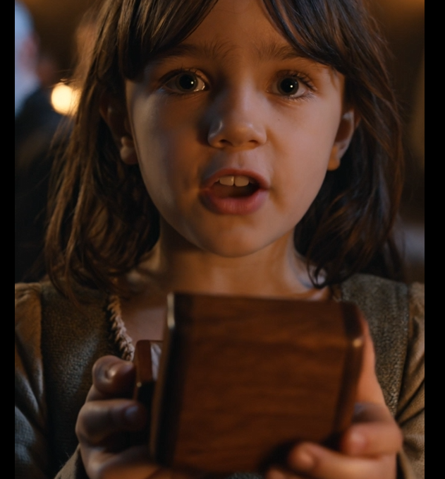 But when a little girl walked across the stone floor carrying a small wooden box in both hands, the room changed around her. Voices dropped. A servant stopped moving mid-step. A noble near the center bench frowned in disbelief.