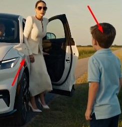The rich woman thought a child had damaged her car—until one old ball nearly destroyed her entire life. The afternoon was bright and peaceful, sunlight rolling across a green roadside field where children laughed and chased each other through the grass. Nearby, a gleaming white Ford Mustang Mach-E stood spotless beside the road, polished like it belonged in another world. Then came the kick. A little boy sent the ball flying hard through the sunlight. Camera tracked it fast—SMASH. It slammed into the side of the luxury car with a metallic crack that froze every child in place. Silence hit instantly. The car door opened slowly. An elegant woman stepped out in white, designer sunglasses hiding eyes already filled with anger.