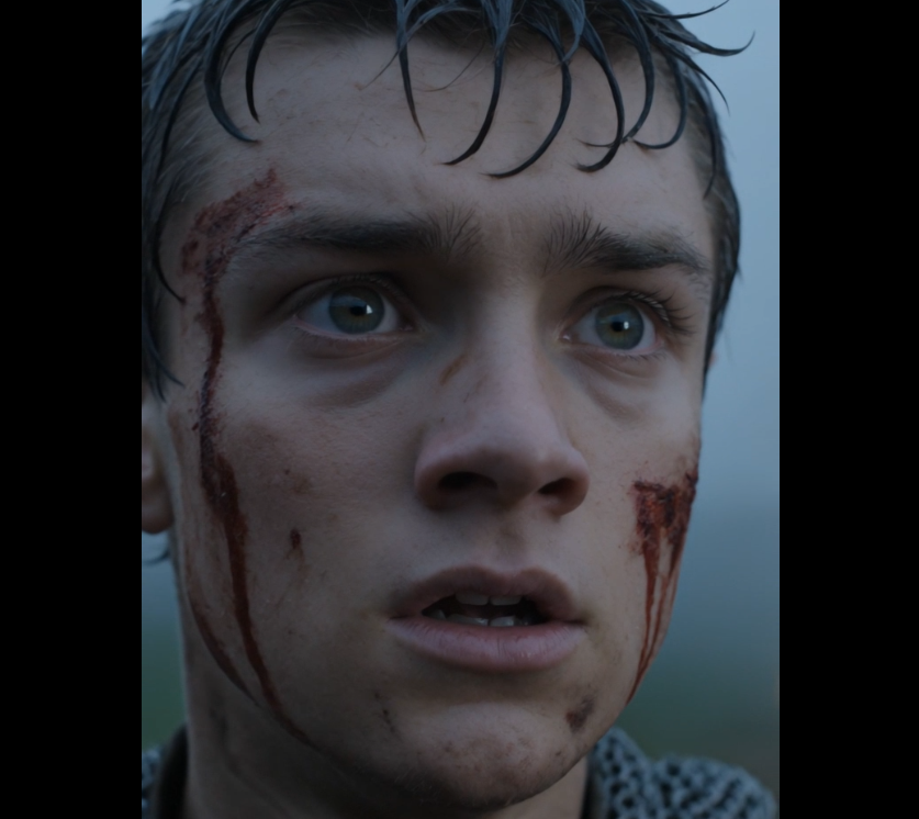 Armor too large for him. Torn. Hanging off one shoulder. A sword in his hand, dragging slightly against the ground with each step.