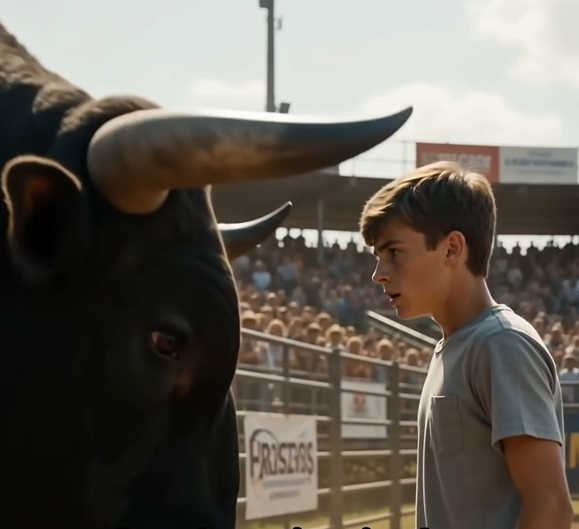 He was thin, no more than sixteen, wearing faded jeans, old boots, and a plain gray hoodie. He had no helmet. No rope. No protective vest. Nothing a rider should have had. He simply stood there, dust around his feet, staring at the bull.